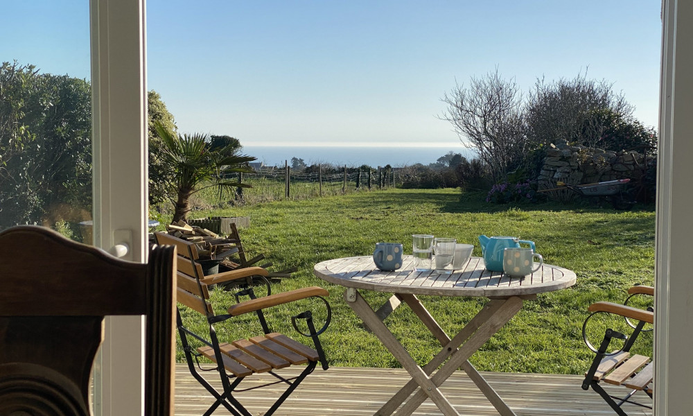 Von der Hauptterrasse aus genießt man einen schönen Blick auf das Meer, eine zweite, geschützte Terrasse bietet eine ruhige Ecke zum Zurückziehen, Lesen oder Frühstücken in der Morgensonne.